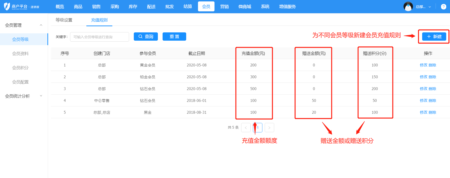 2)商戶在充值規則為自己的會員儲值卡制定充值優惠計劃,允許充值贈送儲值金額或積分。