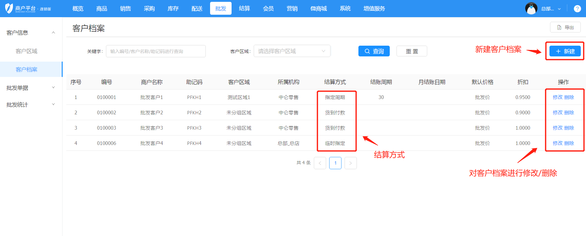 2)批發客戶的信息檔案錄入
