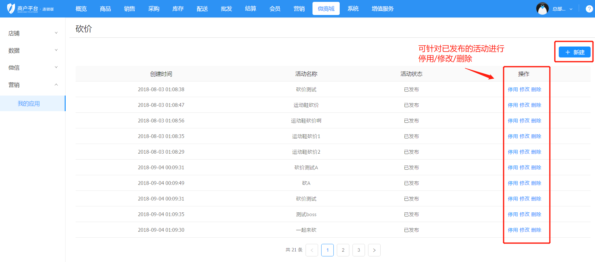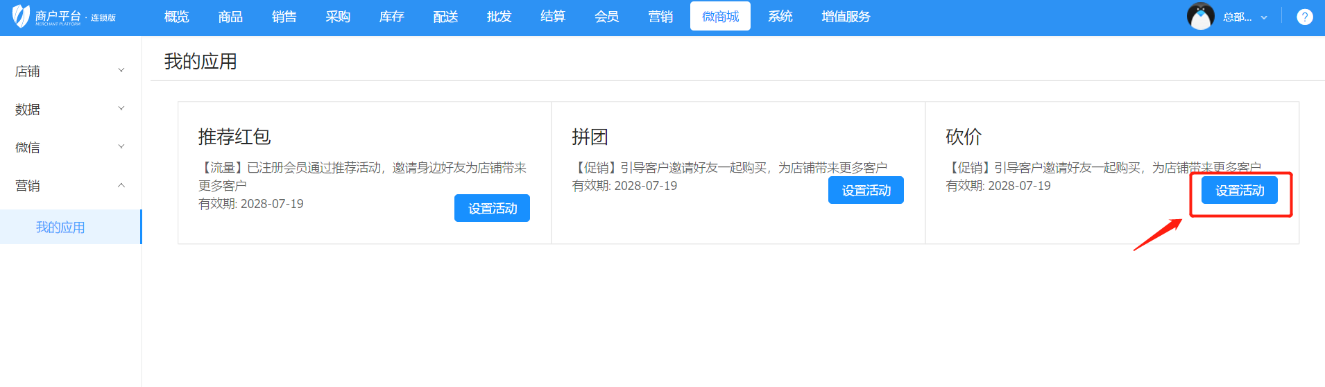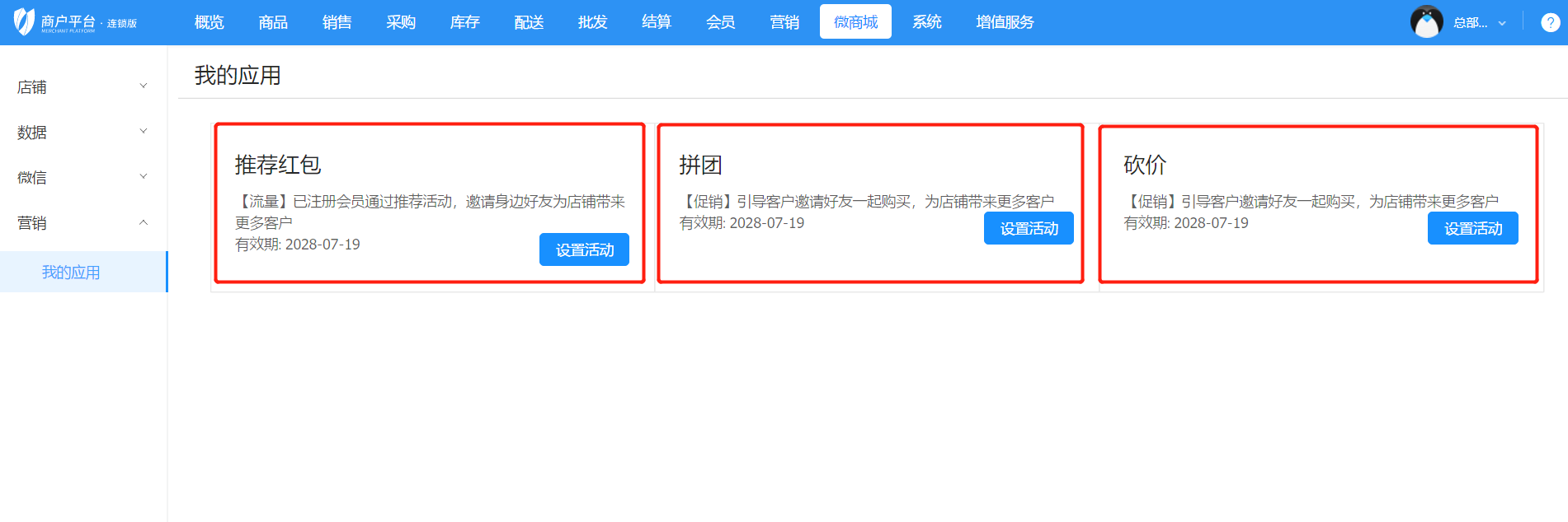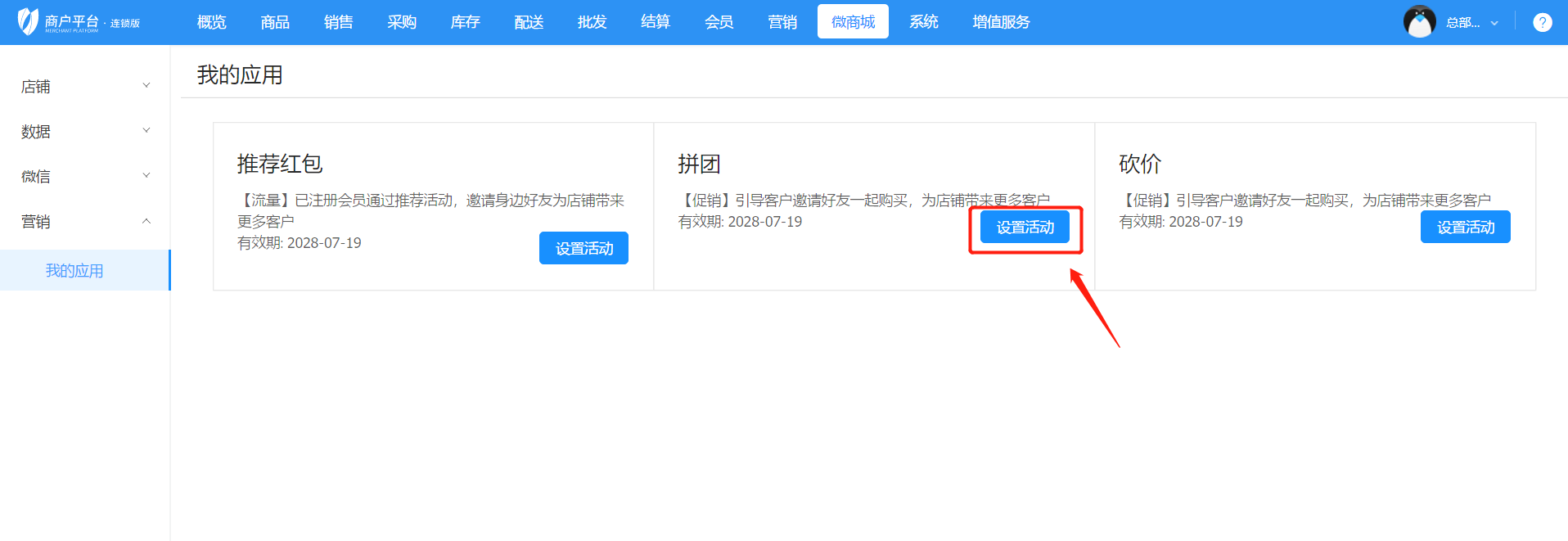 我的應用:包含已經在【應用中心】購買過的應用產品。已購買的產品可以在這里設置相應的活動。