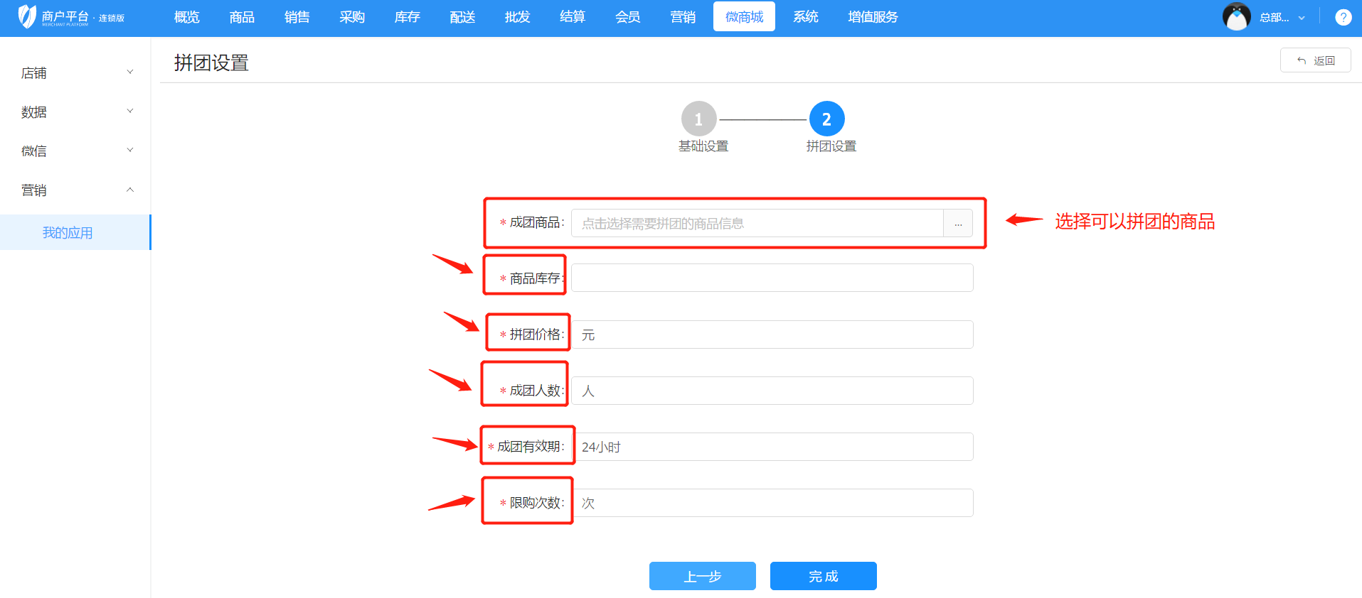 選擇可以拼團的商品、設置拼團價格、人數和有效期,最后點擊保存即可。