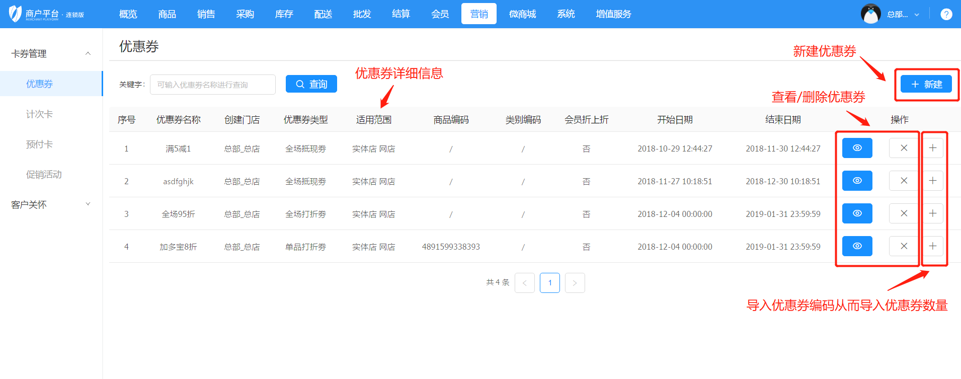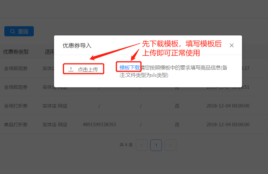 注:優(yōu)惠券需要導(dǎo)入對應(yīng)模板后才能正常使用,模板可以直接在上面界面下載。