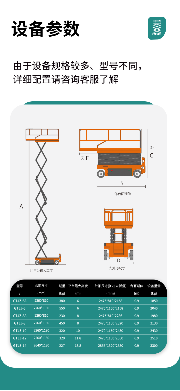 全自行式剪叉升降平臺性能參數