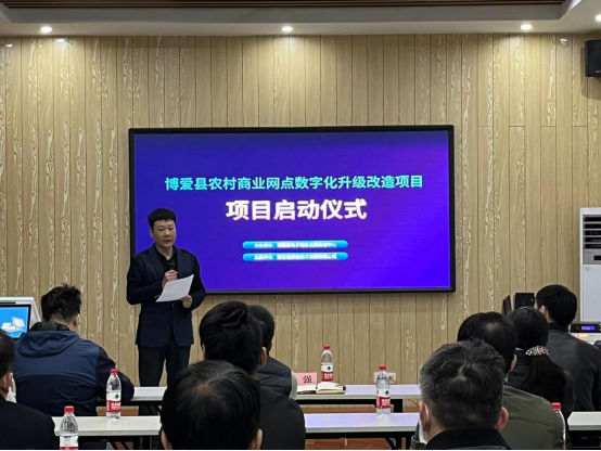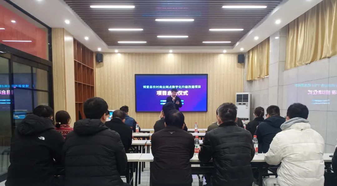 3月16日上午,博愛縣農村商業網點數字化升級改造項目啟動儀式在縣電子商務產業園舉行。博愛縣電子商務發展促進中心負責人、國富通公司項目負責人、各鄉鎮電商工作負責人、商業網點負責人共計30余人參加了活動。