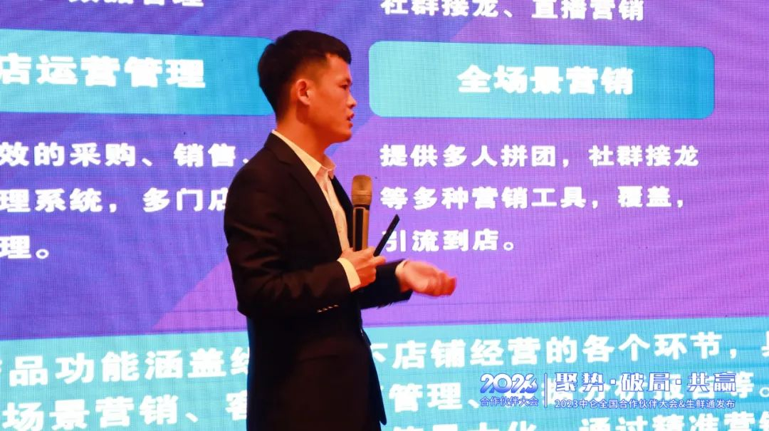 在現(xiàn)場(chǎng),王總向大家展示了銀響力生鮮通的界面、功能、中臺(tái)業(yè)務(wù)和營(yíng)銷玩法。最后表示“我們致力于將銀響力生鮮通打造成為最適合生鮮行業(yè)使用的SAAS產(chǎn)品,幫助伙伴們服務(wù)好全國(guó)千萬(wàn)商家。”