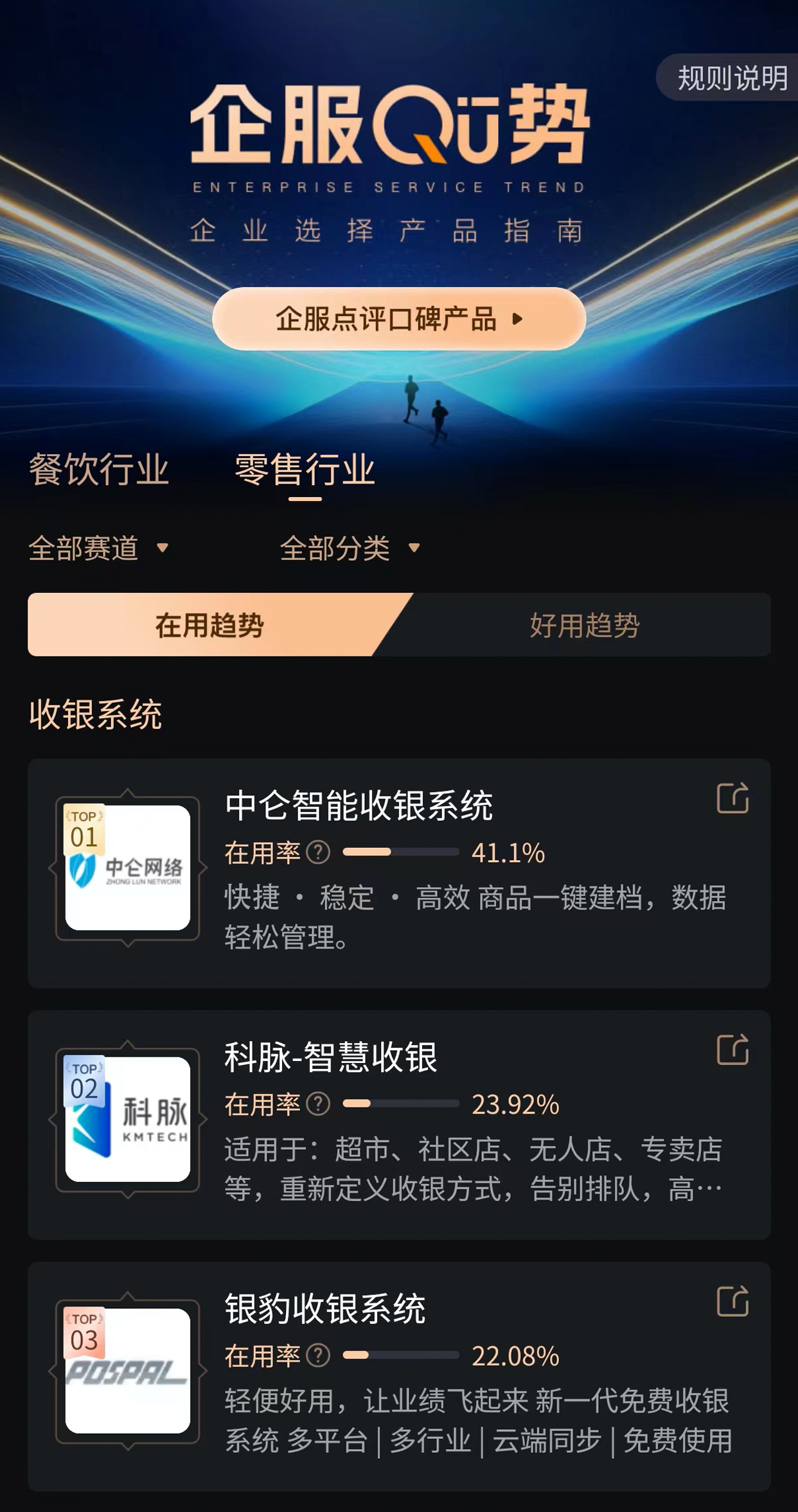 36氪于2021年上線企服點評平臺,是基于對海量用戶調研和對平臺數據分析,結合零售企業使用軟件實際情況,發布行業趨勢調研,為零售企業選擇軟件產品提供一些方向和參考。