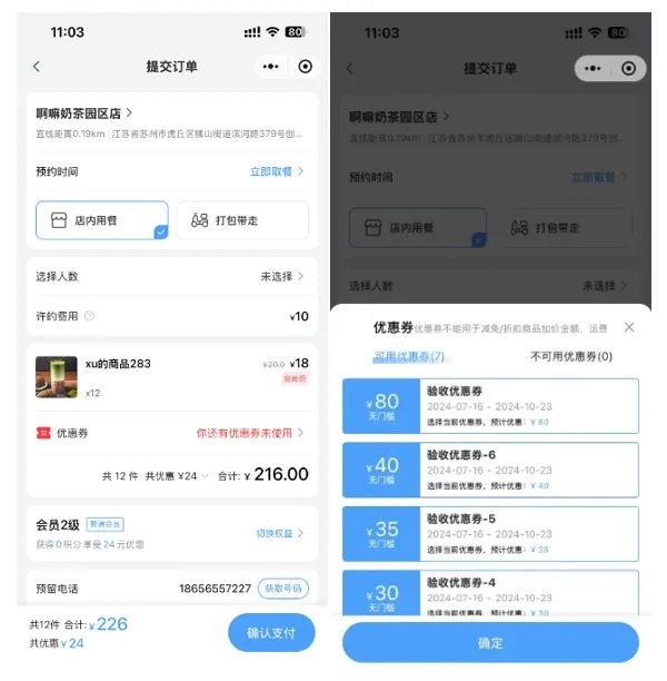 數量優化顯示:當優惠券數量超過10張時,系統將智能計算并展示每張優惠券的優惠金額,幫助用戶快速了解優惠詳情。