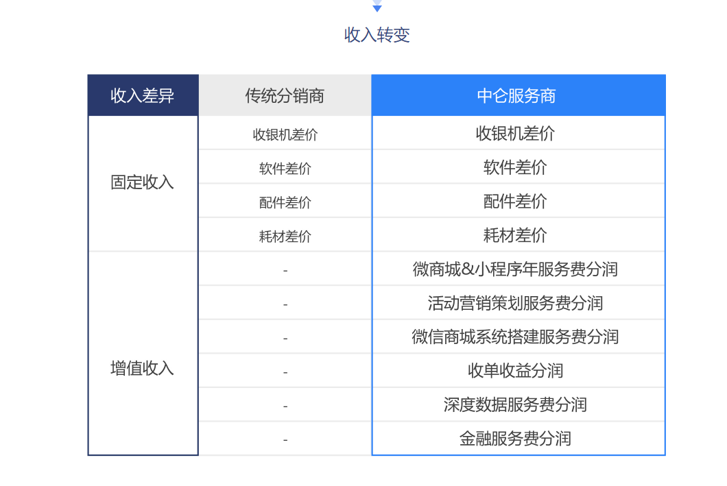 代理過收銀系統的經銷商都知道,傳統收銀系統代理的分潤主要來源是收銀硬件和收銀軟件的差價,經銷商從廠家低價拿貨,然后再提高價格進行售賣,另外如果為零售門店提供專門的上門服務,還可以收取一定的服務費,這就是傳統收銀軟件分銷商的賺錢模式。