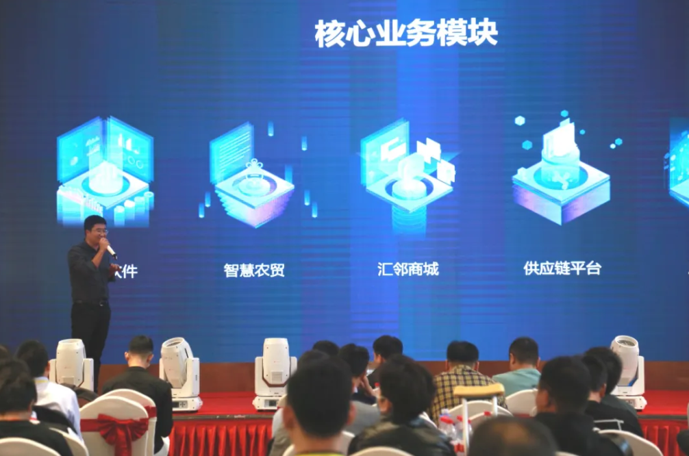 總經理吳海洋以“危中求機,共構未來發(fā)展模式”為主題,與所有新老朋友介紹了公司發(fā)展歷程、企業(yè)理念、核心業(yè)務模塊等,并對智慧農貿解決方案做了整體的剖析和個人觀點的分享。其中最令人印象深刻的是,吳總分享的中侖商業(yè)模式,引起了現(xiàn)場許多合作伙伴的探討興趣。