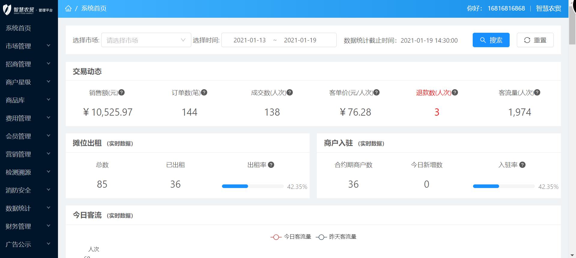 首先對于商戶來說,收銀系統(tǒng)能否快速完成稱重收銀的交易過程是衡量收銀系統(tǒng)好壞的一個重要標準,所以對于商戶使用的收銀系統(tǒng),操作界面要簡單清爽易操作,加之菜場很多的經(jīng)營商戶都是一些年紀稍大的人,對于收銀系統(tǒng)的易操作性訴求更高;而對于市場方而言,則需要通過農(nóng)貿(mào)市場管理后臺,快速全面的了解整個市場的情況,交易數(shù)據(jù)、檢測信息、客流信息等等,這些都需要市場管理后臺操作簡單,智能方便,能夠便于市場方高效管理。