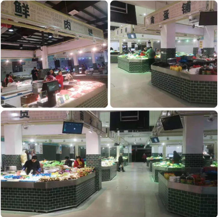 農(nóng)貿(mào)市場改造首先會從整體外觀上進行徹底改造,一改“臟亂差”的形象,建立“凈齊優(yōu)”的農(nóng)貿(mào)市場環(huán)境,地面干凈整潔,不僅有固定的垃圾分類放置處,而且有專門的衛(wèi)生人員進行監(jiān)督和市場環(huán)境優(yōu)化;市場攤位按照功能區(qū)域劃分,清晰明朗,蔬菜區(qū)、干貨區(qū)、海鮮區(qū)等等,讓消費者一眼就能找到自己想要去的攤位,并且每個攤位整齊排列,裝飾也是統(tǒng)一布局,讓整個市場看起來都很舒暢。