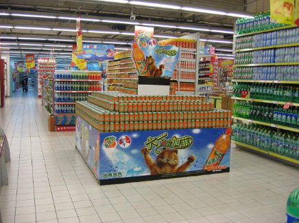 ③供應商做形象堆頭,提供一系列堆頭陳列所需道具,此時,賣場的主要責任在于對道具的把關,一定要是新的陳列道具。