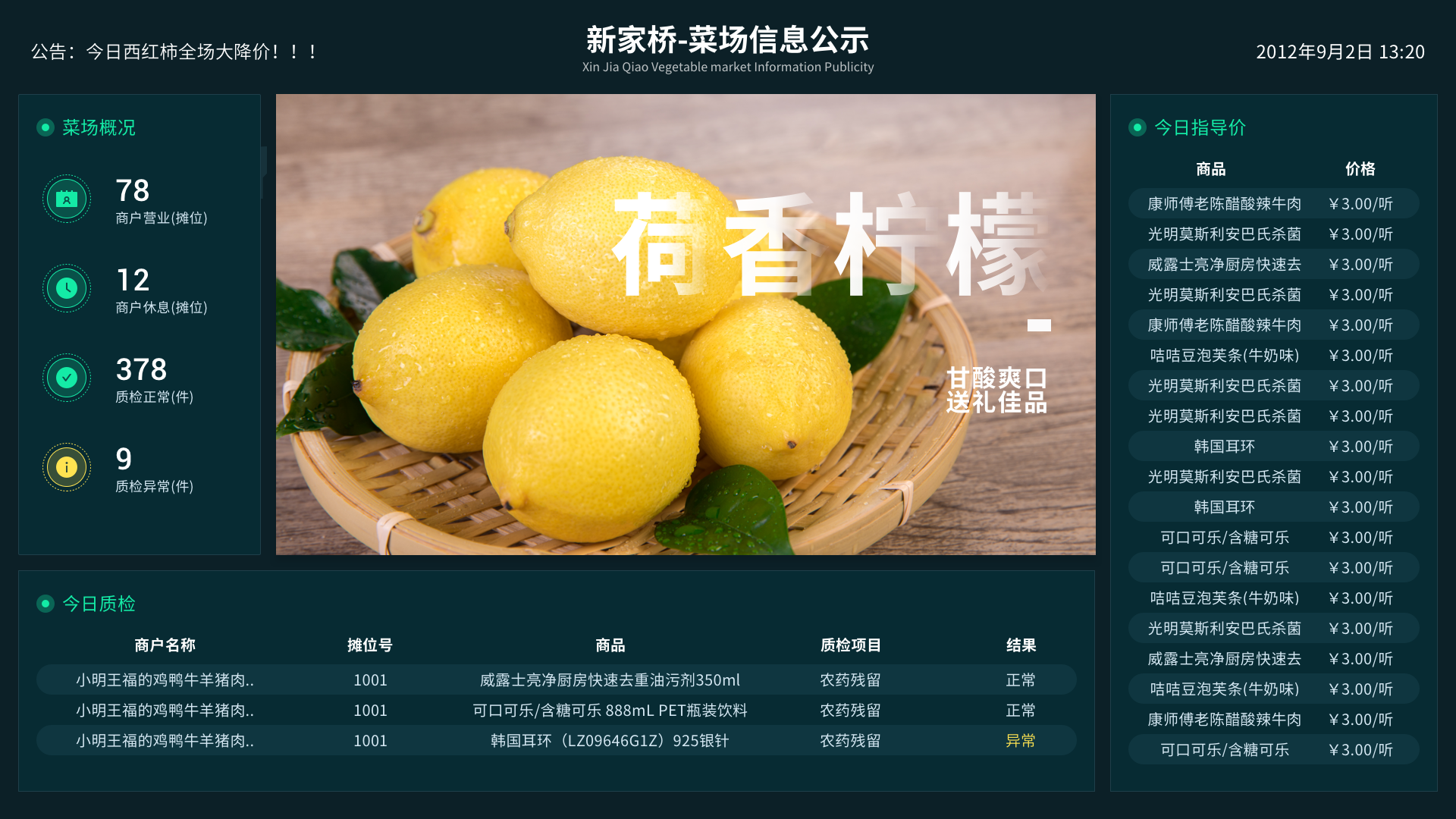 智慧菜市場加強了對商戶交易的監管,每個商戶的信息都有據可查,菜場內配備了智能一體秤,數據大屏、商戶信息公示屏等硬件設備,一體秤精準稱重誤差小,避免了缺斤短兩的不良行為,菜場內數據大屏輪播菜品參考價格,為消費者購物提供了一個參考依據,消費者通過商戶信息公示屏也可以查詢到商戶信息,并且菜場會對那些有不良行為的商戶信息進行公布,這對于消費者而言,更加值得信賴。