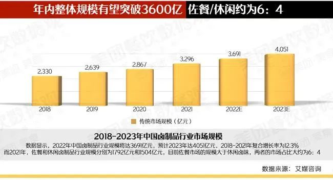 2016年鹵味行業市場規模剛剛突破800億元,幾年之內行業已發生巨變。根據數據預測,2022年中國鹵制品行業規模將達3691億元,預計2023年突破4000億元大關。