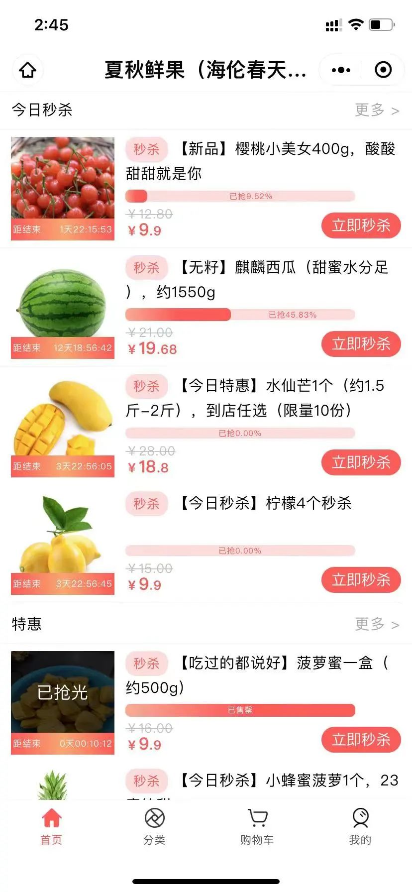 為了縮短新客下單鏈路,提升用戶體驗(yàn),中侖匯鄰門店運(yùn)營幫助夏秋鮮果商搭建好線上商城,并對小程序進(jìn)行升級優(yōu)化,包括秒殺活動(dòng)、產(chǎn)品上架、權(quán)益福利設(shè)置(如新會(huì)員入駐有禮、邀請有禮、企業(yè)微信的入群福利、積分商城禮品、會(huì)員權(quán)益等等),吸引大量用戶注冊并下單。