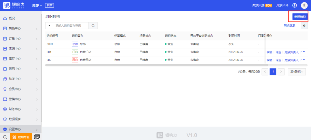 當(dāng)您開通連鎖門店,總部以及各個子門店的會員可以設(shè)置共享或者不共享,共享會員的話就可以實現(xiàn)會員卡的通用。請參考以下設(shè)置流程(只有新建的時候可以設(shè)置),按照步驟設(shè)置即可:銀響力后臺——設(shè)置中心——組織機(jī)構(gòu)——新建——經(jīng)營信息——會員管理