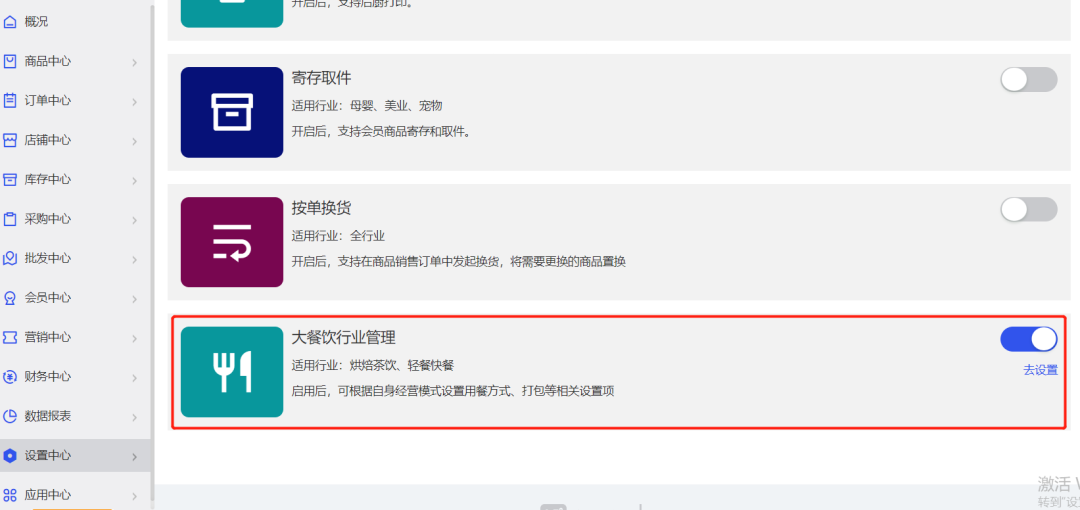 當(dāng)門店關(guān)門停業(yè)或禁止堂食的時候,以堂食為生命的餐飲企業(yè)被迫在經(jīng)營模式上做出調(diào)整,增加外帶、外賣等業(yè)務(wù)。銀響力最近推出大餐飲行業(yè)管理功能(打開銀響力后臺——設(shè)置中心——系統(tǒng)設(shè)置——行為能力——大餐飲行業(yè)管理),根據(jù)經(jīng)營模式需要設(shè)置門店或線上下單時是否需要選擇堂食外帶。如某些連鎖門店或網(wǎng)店經(jīng)營需要僅提供堂食或外帶,可針對單個門店進(jìn)行設(shè)置。
