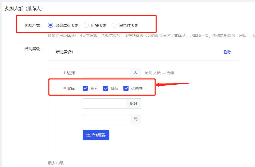 商家還可以設置被推薦人的獎勵,贈送積分/儲值/優惠券,更能激發大家分享熱情,促使消費者積極分享邀請好友,發動社交力量,讓好友組團下單。