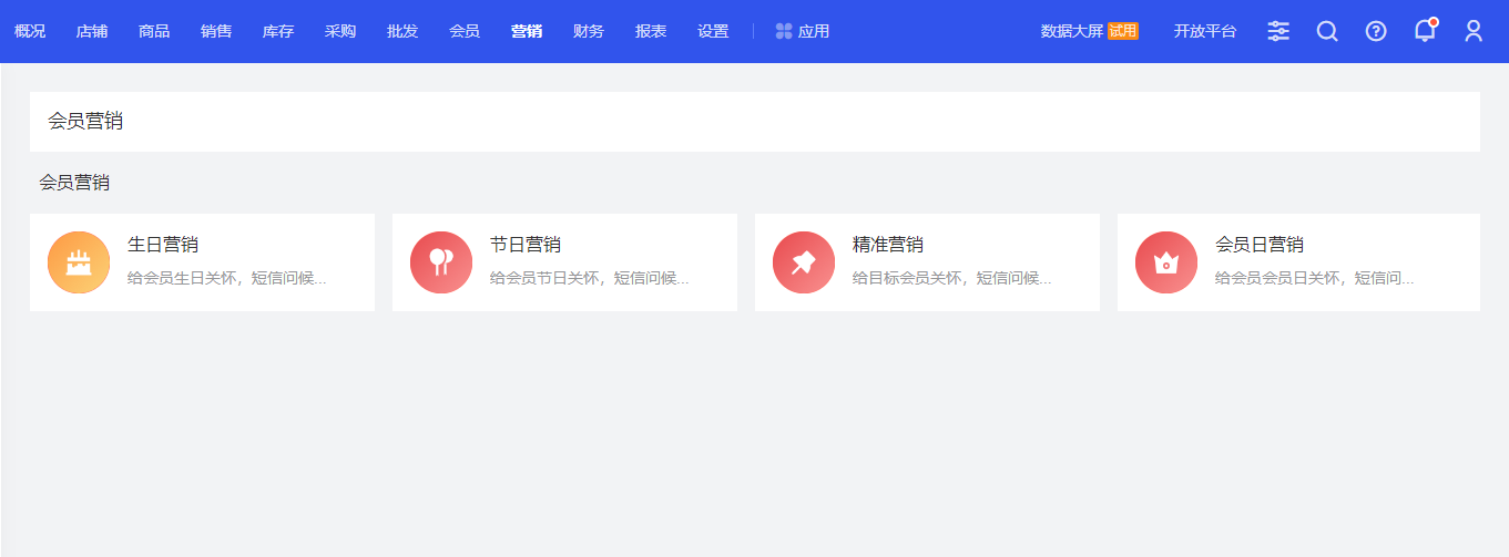 在重要節日或者門店上新超低折扣等重大活動中,我們還可以借助會員營銷功能,給門店會員用戶發送短信,直接觸達用戶,提高門店銷量。