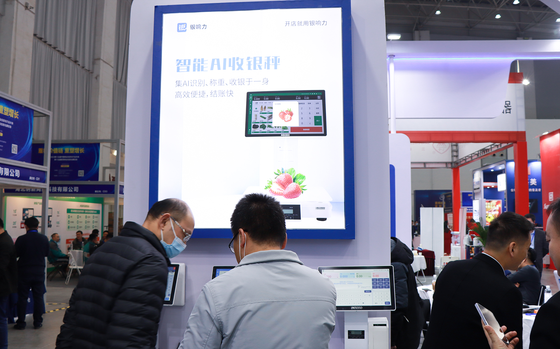 本次中侖網絡以——“開店就用銀響力”為主題,現場展示了銀響力收銀系統、AI生鮮電子秤、深度運營解決方案、商家小程序等多種產品,為現場體驗者提供現場軟件體驗和數字化行業解決方案。