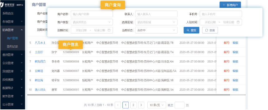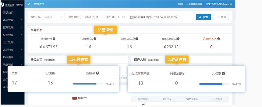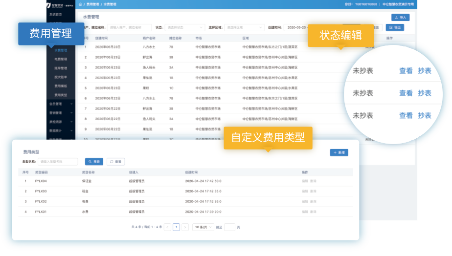 將攤位、商戶及費用與系統進行關聯,實現管理的規范化、電子化