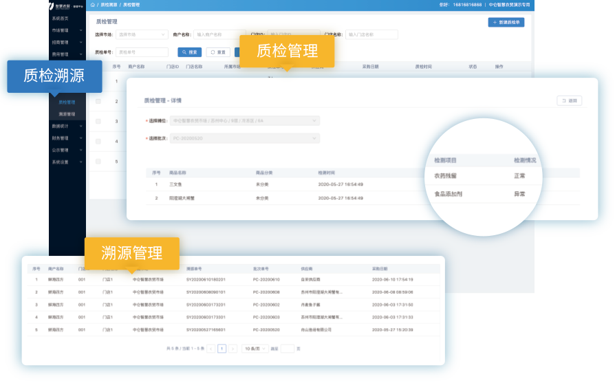 ? 信息化溯源技術&產品質檢平臺,保證食品安全。